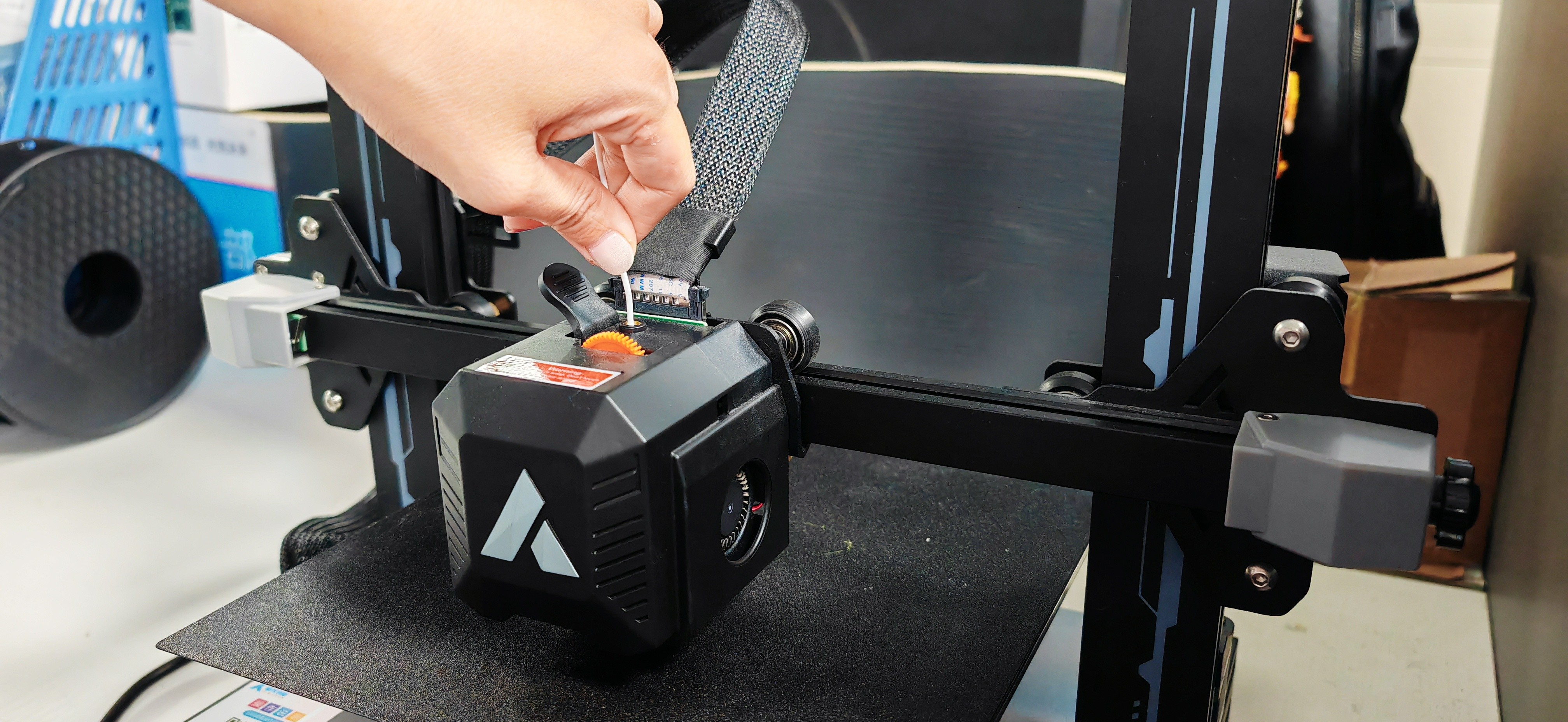首要可以選擇手動用耗材進行按壓疏通。先將3D打印機的噴頭加熱到能夠熔化耗材的溫度,通常為230度左右,接下來,點擊“進料”功能,試著手動將一小部分線材壓到噴頭中。當擠出器開始運轉的時候,用手輕輕地把線材擠壓到噴頭里面。在很多情況下,這個向下的壓力能夠促使線材順利穿透堵塞的部分,促使噴頭恢復暢通。