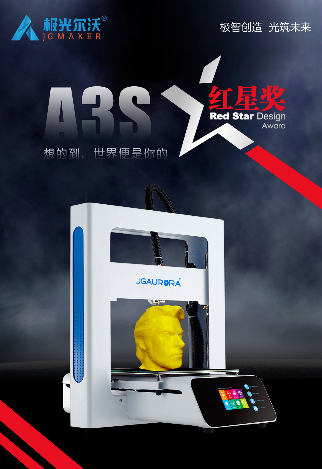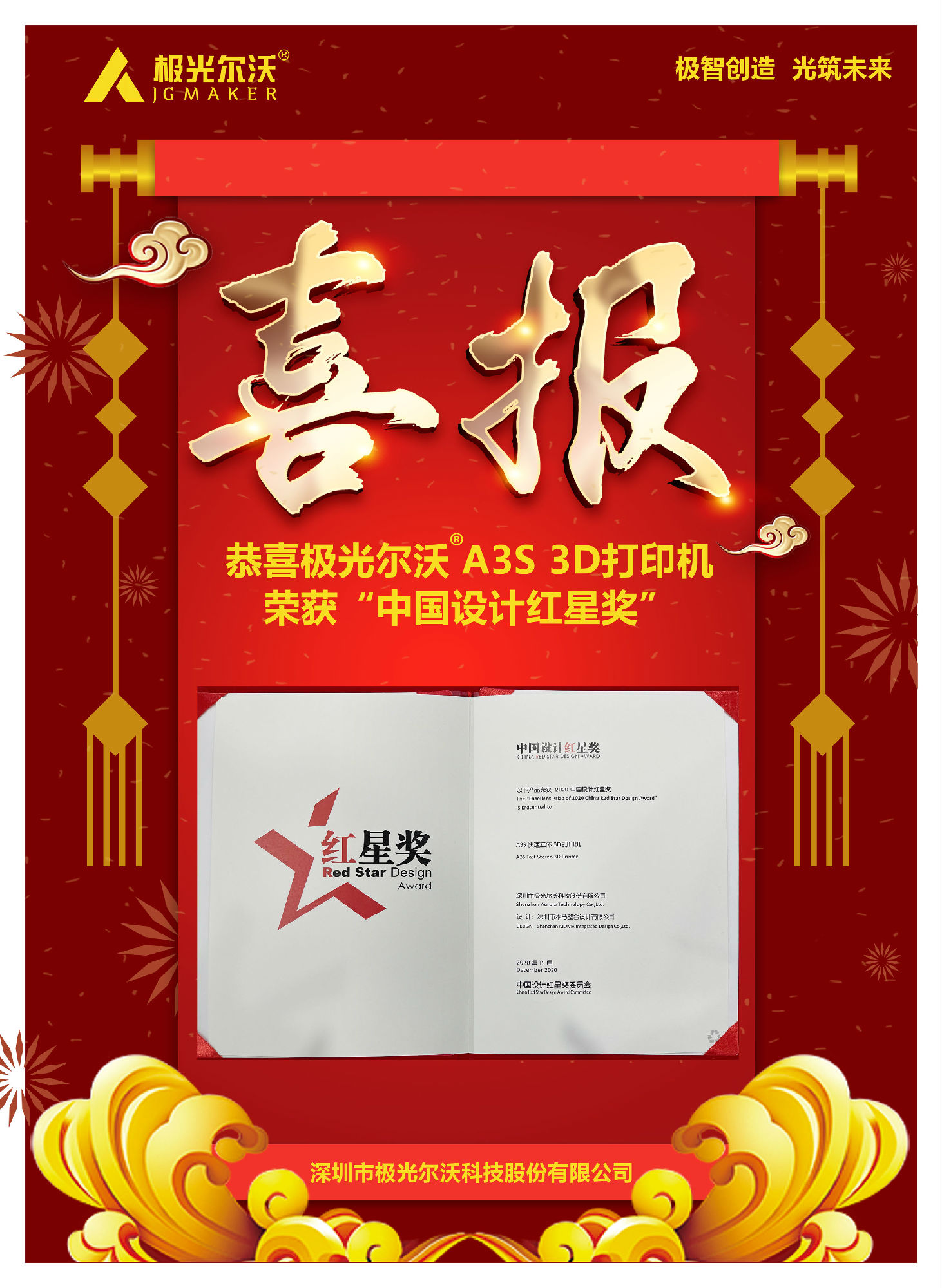 12月9日,2020中國設(shè)計紅星獎頒獎活動在北京舉行。2020年中國設(shè)計紅星獎以"融合的時代 凝聚的力量"為主題,來自全球5000家企業(yè)的7000余件產(chǎn)品參與角逐。極光爾沃A3S 3D打印機憑借新穎獨特的設(shè)計理念、簡潔純粹的產(chǎn)品形象從眾多產(chǎn)品中脫穎而出,獲得評委一致青睞,一舉拿下2020中國設(shè)計紅星獎。