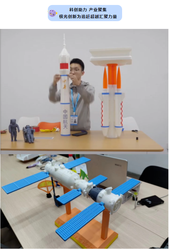 飛天夢,極光夢!極光創(chuàng)新小伙伴在獲悉神舟十五號載人飛船即將發(fā)射之際,極光創(chuàng)新3D打樣團隊利用工業(yè)級A8S/A9Pro等工業(yè)級3D打印設(shè)備,花費3天3夜不間斷打印,終于在神舟十五號飛船發(fā)射之際,完成了空間站組合體的打印及裝配工作,用于祝賀我國航天產(chǎn)業(yè)取得的諸多技術(shù)性突破,同時也祝賀祖國在空間站建設(shè)方面實現(xiàn)了超越傳統(tǒng)空間站技術(shù)水平的高速發(fā)展。