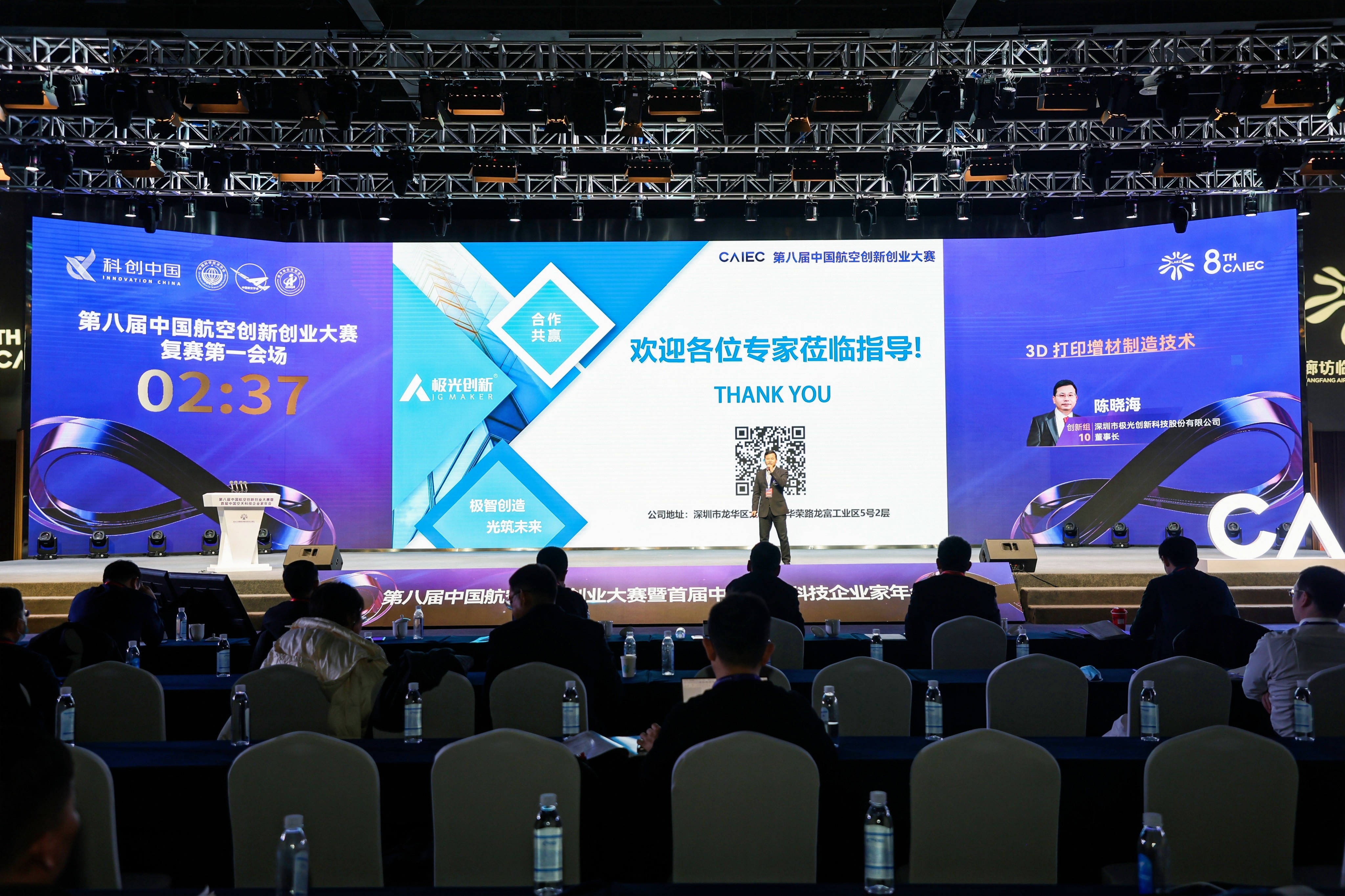 極光創(chuàng)新作為增材制造技術(shù)的代表企業(yè),受邀參加了此次活動(dòng)創(chuàng)新組的項(xiàng)目競(jìng)演。與來自航空工業(yè)、航發(fā)集團(tuán)、南航、北航、西工大的前沿技術(shù)團(tuán)隊(duì)和其他行業(yè)優(yōu)秀的民營(yíng)企業(yè)同臺(tái)競(jìng)技、激烈比拼,最終成功挺進(jìn)復(fù)賽,斬獲了不斐的成績(jī)。