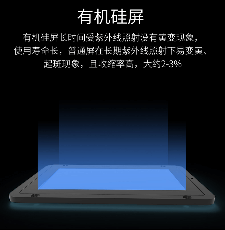 LCD屏幕在我們的生活中,是十分易見,我們的電腦屏幕,手機(jī)屏幕,平板電腦屏幕大多都是采用LCD屏幕,我們把這類屏幕歸類民用生活,因?yàn)楦叩男詢r(jià)比,量產(chǎn)較為簡單,所以生活中大多都是普通LCD屏。那既然有普及的LCD屏,當(dāng)然也有高精工業(yè)級(jí)別的LCD屏,工業(yè)控制屏行業(yè)相對(duì)常見的屏幕,制造的難度及標(biāo)準(zhǔn)都要高一個(gè)級(jí)別,工控行業(yè)LCD屏幕在長時(shí)間耐高溫及紫外光照射下,素質(zhì)要比我們常見的屏幕要更好,不易發(fā)黃,起斑的情況的出現(xiàn)。市場上的打印機(jī)已經(jīng)普及主流到了5.5英寸2K屏,這次極光爾沃采用5.8英寸1080P屏幕,從參數(shù)上觀察,2K是比1080P要好,因?yàn)榭v向多了360個(gè)像素點(diǎn),達(dá)到了1080P的三分之一還要多,極光爾沃這次是否真的打錯(cuò)算盤了呢,其實(shí)認(rèn)真思考,并不是,在市場上LCD光固化打印機(jī)的5.5英寸2K屏都是某個(gè)廠商大量供貨,而高精工控行業(yè)5.8英寸固化顯示屏,市場上很少廠商在制造,因?yàn)楣に囯y度及成本控制,讓廠商利潤大大降低,換句話說,5.8英寸顯示固化屏,在市場上市比較少見,用的也不多,但相對(duì)常見的5.5英寸2K屏幕,工控5.8英寸屏質(zhì)量及壽命是另一個(gè)層次的級(jí)別。極光爾沃G3光固化打印機(jī)綜合使用體驗(yàn),選用了此款高性能的固化屏,延長用戶使用打印機(jī)的時(shí)間,讓用戶更少的維護(hù)更換固化屏幕,極光爾沃對(duì)屏幕還進(jìn)行了3個(gè)月正常使用質(zhì)保服務(wù)保障。