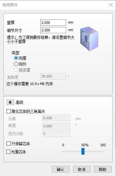 “向里”自然就是模型內(nèi)部掏空,“向外”則是在模型外面包一層殼,用于制作模具等情況。