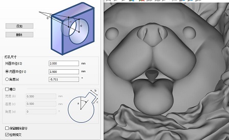 最后,赤兔軟件支持保留孔樁,magics也可選保留孔樁,用以打印完后補(bǔ)洞。模型清洗完后,需要放置一段時間,待內(nèi)部酒精蒸發(fā)干凈后再補(bǔ)洞。另外,一般LCD都會存在膨脹現(xiàn)象,因此孔樁需要打磨后才可補(bǔ)入。