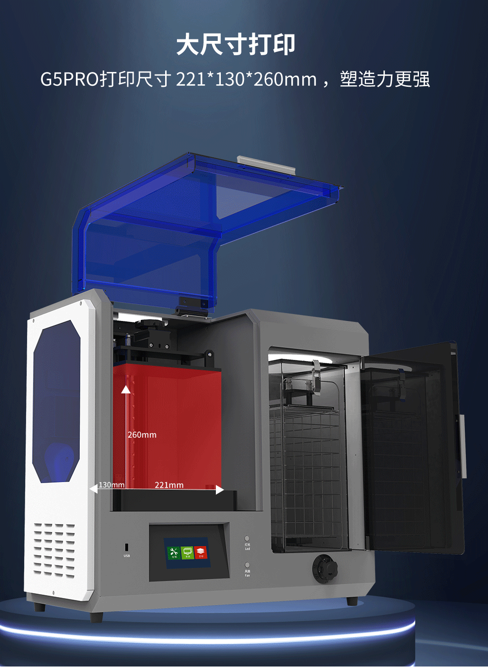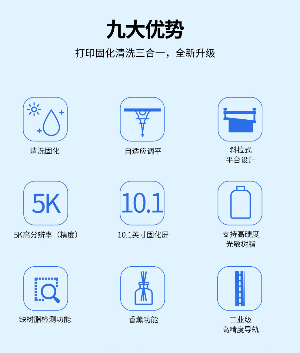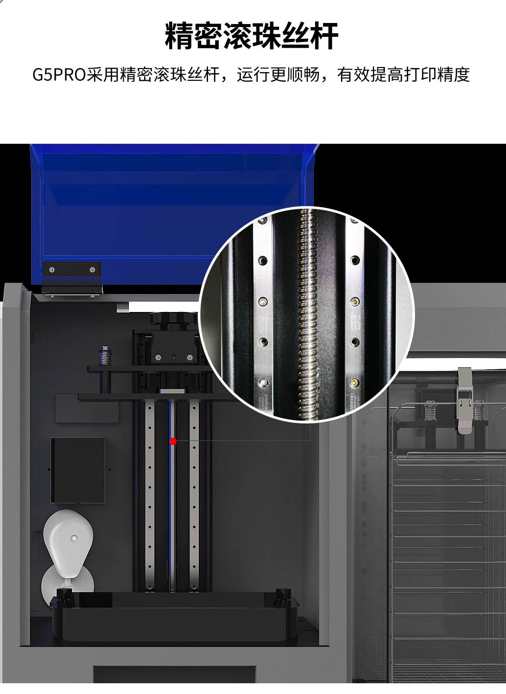 JG-L5 Pro 采用10.1寸6K透光固化屏,理論精度可高達(dá)0.045mm;增加打印、清洗、固化 三合一功能,內(nèi)置攝像監(jiān)控;對斷料檢測傳感器模塊做了升級,以及缺料會自動提示加料。