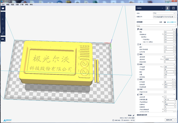 2、切片:在打印前,將電視機(jī)模型的主機(jī)與天線單獨(dú)保存成stl文件; 然后將stl文件導(dǎo)入切片軟件,設(shè)置層高、厚度、填充密度、打印速度、支撐等打印參數(shù)并保存成GCode文件,而后導(dǎo)入3D打印機(jī)即可開(kāi)始打印。(切片軟件推薦:Cura /JGcreat)